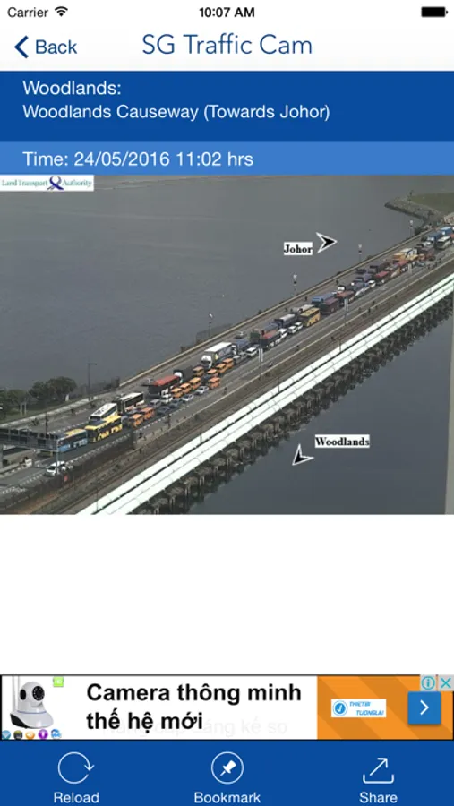 NEW! Now you are able to see the road conditions via the traffic cameras available across the Causeway! Traffic Images is now available for the Malaysia's side Causway & 2nd Link.