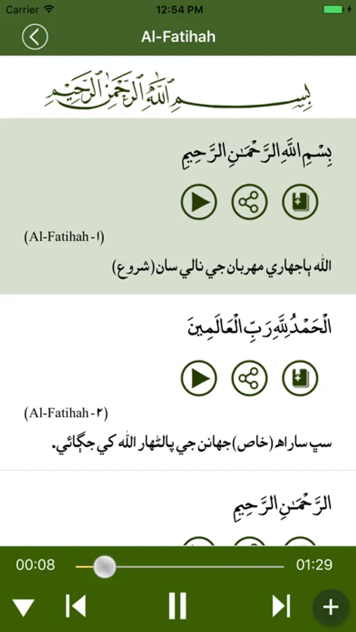 With this Islamic book app, you are getting Hafizi quran with real page-curl experience. This is not just a textual app, it is an audio Quran app. You can listen telwat of Quran ayats continuously (internet connection required). You can search words or topic in Sindhi on this Quran app. Bookmark the ayat / verse you like / quote. Share the ayat / verse you want.