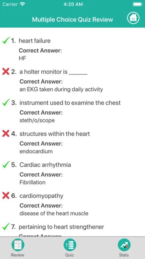 - View detailed statistics about your quiz grade and achievements.