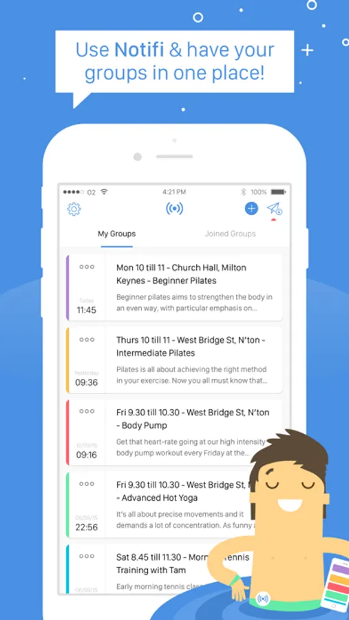 MyNotifiApp is a group management app that allows businesses to manage client groups, member lists and send one way updates, owners can also send payment requests. Members receive important updates to their private noticeboard. Member data is never shared and only the group owner and the member can see each other. It's all about data protection.