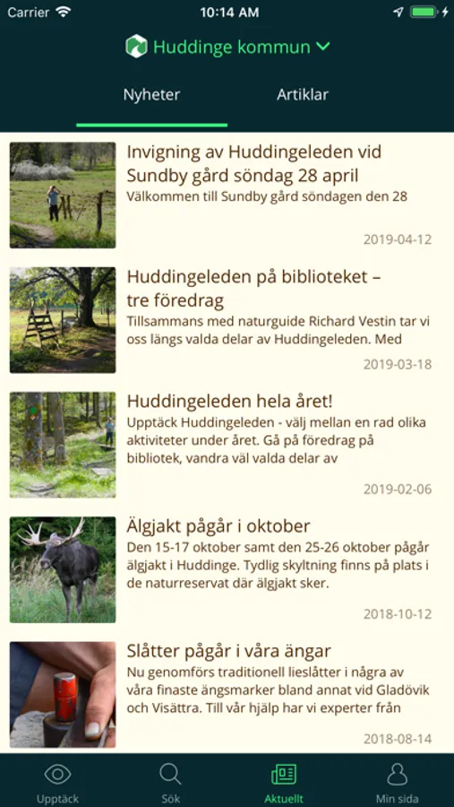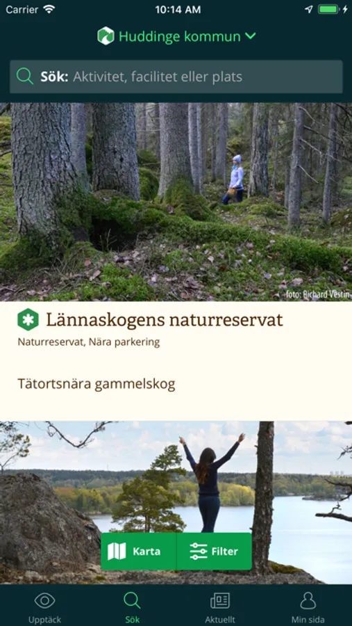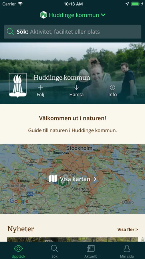 Välkommen ut i Huddinges härliga natur! Följ våra vandringsleder, flera anpassade för barnvagn och rullstol. Stanna och njut av stillheten och utsikten, grilla en korv vid någon av kommunens grillplatser, vi lägger ut ved. Ta ett dopp vid någon av kommunens bad eller sök upp en egen klippa. Ta med fiskespöt och leta upp en lämplig sjö att fiska i. Spana efter fåglar vid något av våra fågeltorn. Lär dig något nytt - varje naturreservat har sina spännande djur och växtarter.