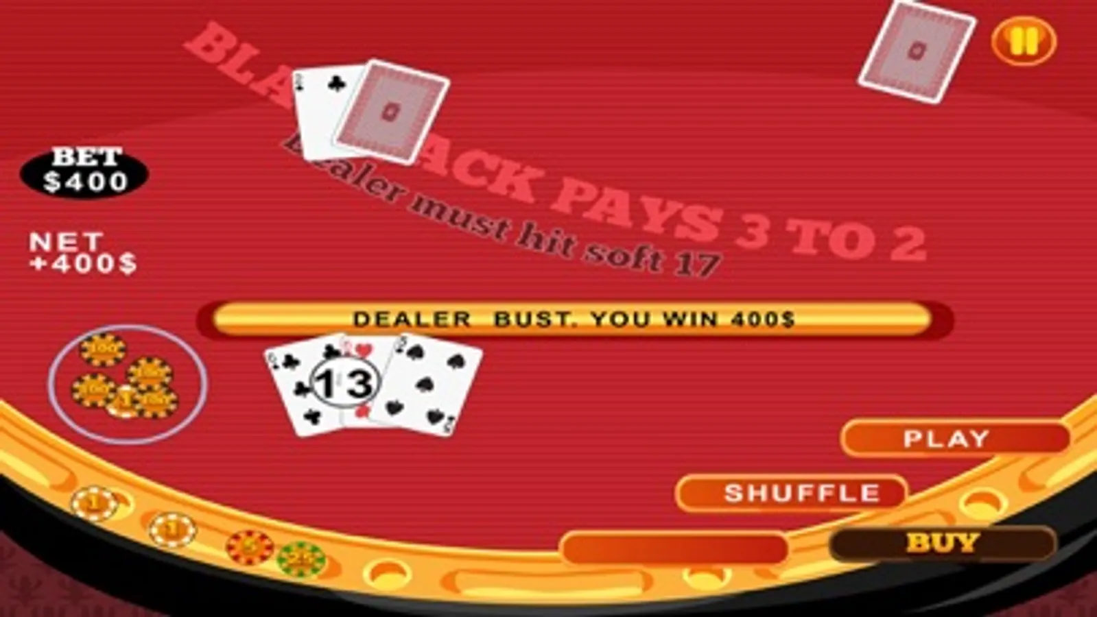 - Realistic game-play of Blackjack, holding,doubling down, betting ...And winning!