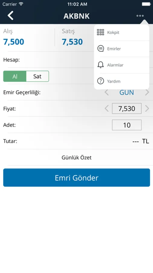 - Profesyonel yatırımcıların masaüstü uygulamalarda kullandığı “Kokpit” ekranı ile emir gönderimini gerçekleştirebilir