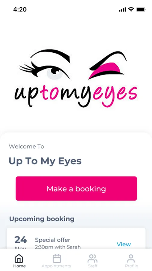 The Up To My Eyes app makes booking your appointments and managing your loyalty points even easier. You're just a few taps away from feeling good and looking great!