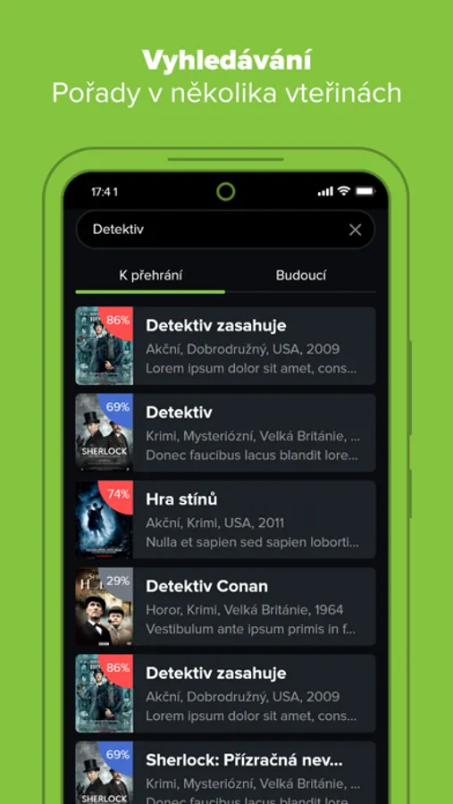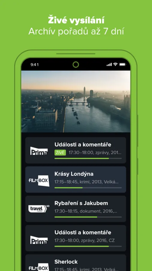 - živé televizní vysílání s možností přehrání od začátku