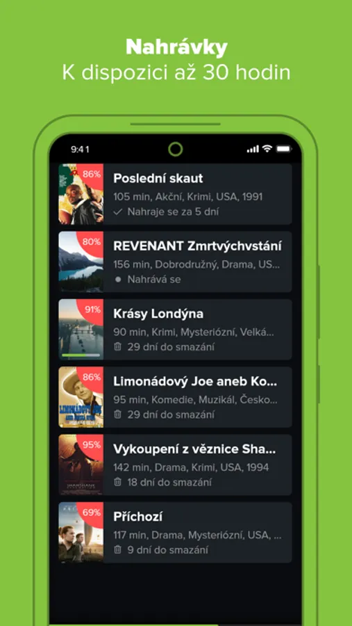 - nahrané pořady po dobu až 30 dní