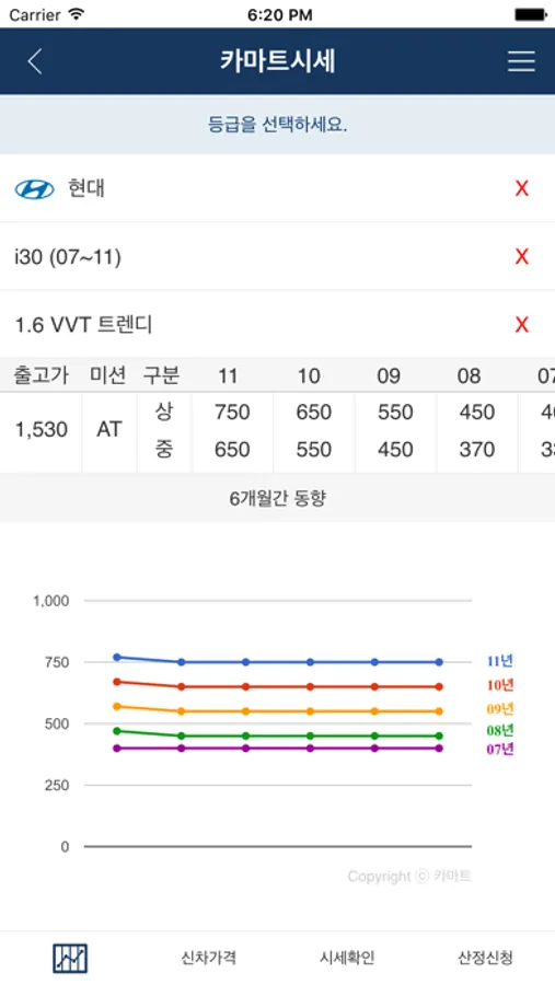 신차 출고시 차량의 가격정보를 월별로 제공합니다.