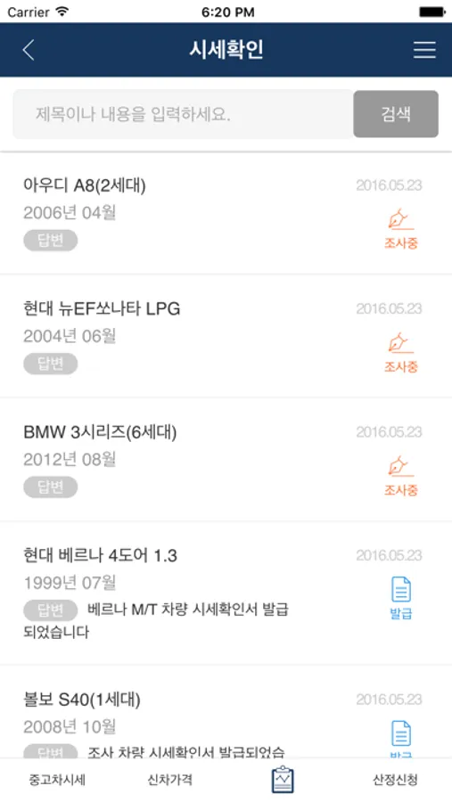 중고차 및 사고차량의 시세를 산정해드립니다.