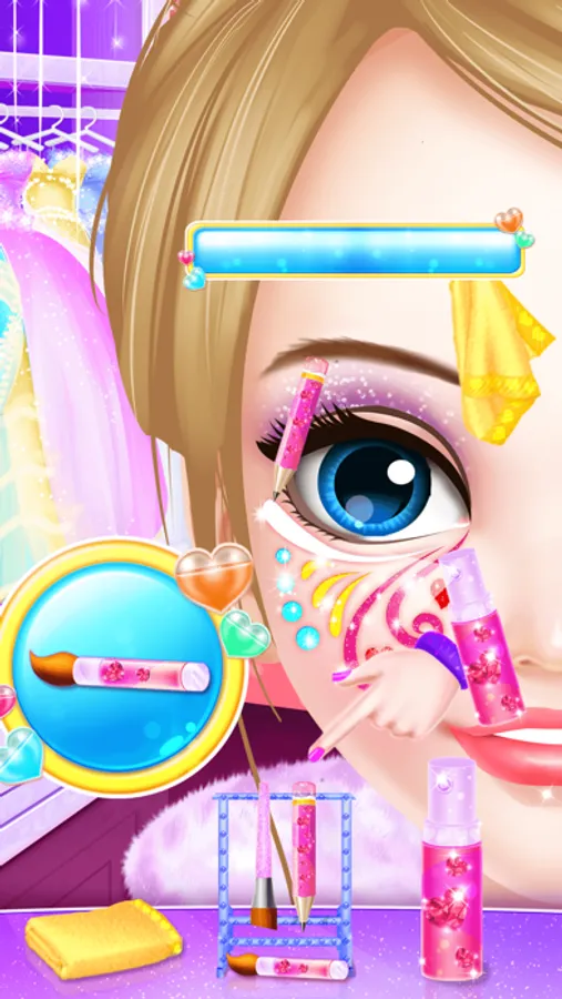 Beautiful princess will hold her brilliant wedding today. Come to help her make a nice wedding painting and let her be the most charming bride today. Firstly, come to wash her face with our given facial cleanser and then get rid of those red pimples on her face one by one. After that come to make some eye creams and put one piece of blinder for several minutes to clear away her black eyes. Next step, you can give her a nice stream spa to make her facial skin look fresh. After the facial spa, help her make one excellent face and eye mask and put some facial creams on her face. Secondly, you need to choose one type of beautiful facial painting model and put it on the face of princess. Then you can use our given painting tools and colors to design your chosen facial painting. Follow our instructions to design steps by steps totally according to the given face painting model. After the painting, you can use the towel to modify it and use the pen and mist spray to make some shining stars to make the painting look perfect. Thirdly, come to make up for the princess. Choose suitable eye brow shape and eye shadows colors for her. Put on one pair of cosmetics contact lenses for her and use other given cosmetics to make her look as beautiful as you can. At last, come to choose one set of pretty wedding dress for her and decorate her beauty with nice veil, crown and flowers. At the same time, choose her loved hairstyle, necklace and earrings. Show us this beautiful bride in the end.