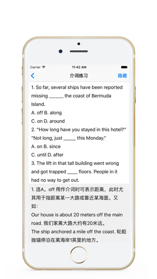 支持练习题答案一键显示/隐藏。
