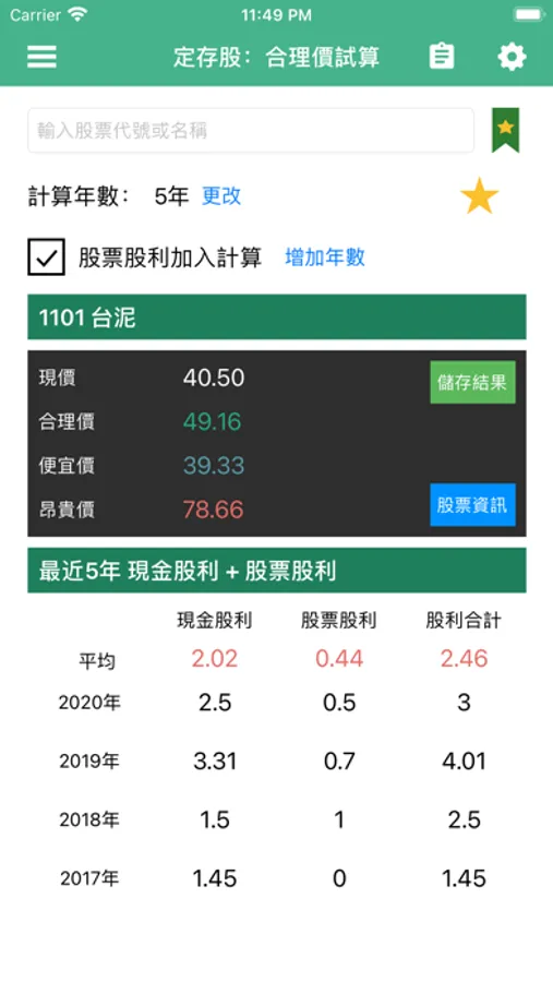 ● 個股歷年股利資訊(以歷年股利推算合理價)