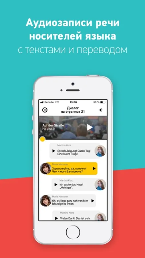 С приложением "Язык без границ" вы научитесь естественному немецкому произношению и сможете понимать речь носителей языка на слух.