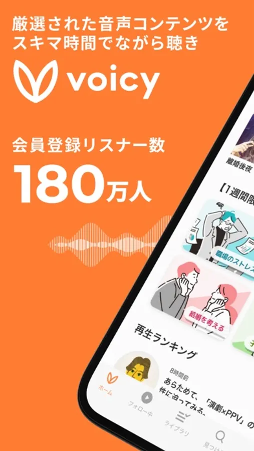 Voicyは、厳選された音声コンテンツを無料で“ながら聴き”できる音声プラットフォームです。