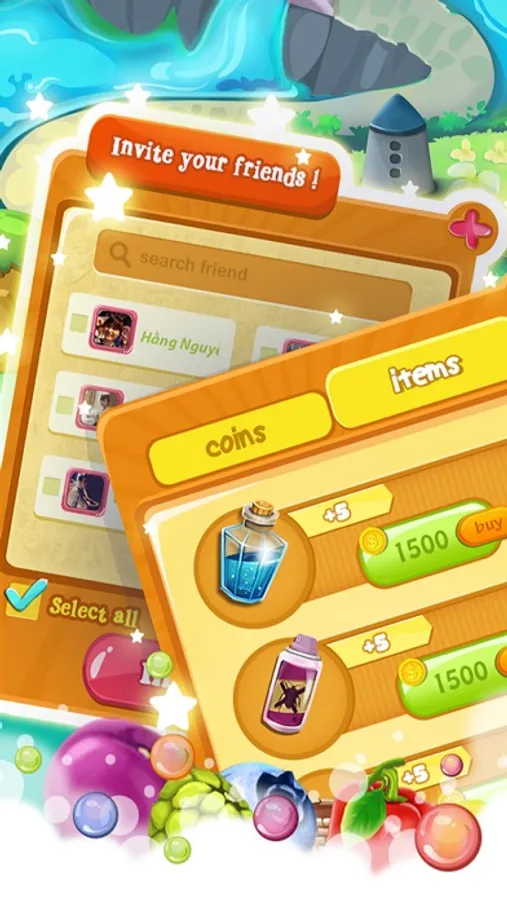 • Hand can change positions of two close fruits, once using this item you will lose 1 move