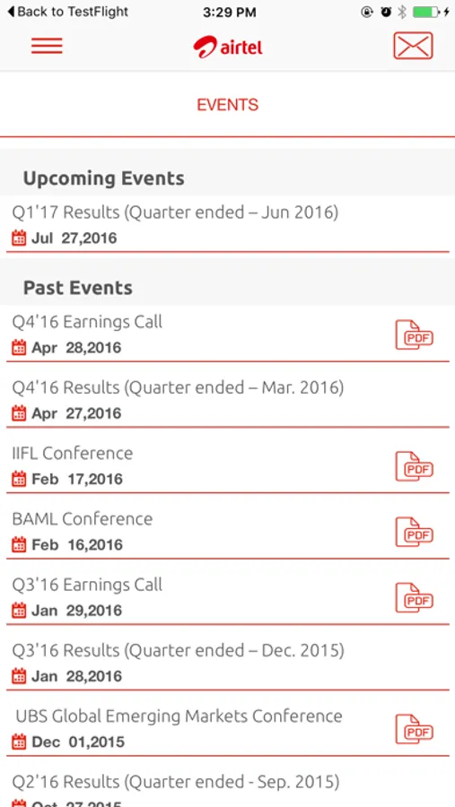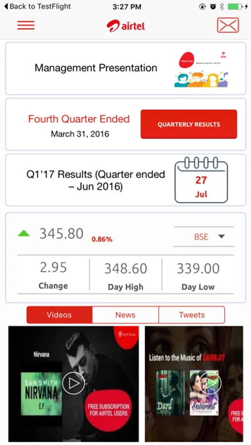 The Airtel IR App will be updated with the latest financial information at the same time as the corporate website.