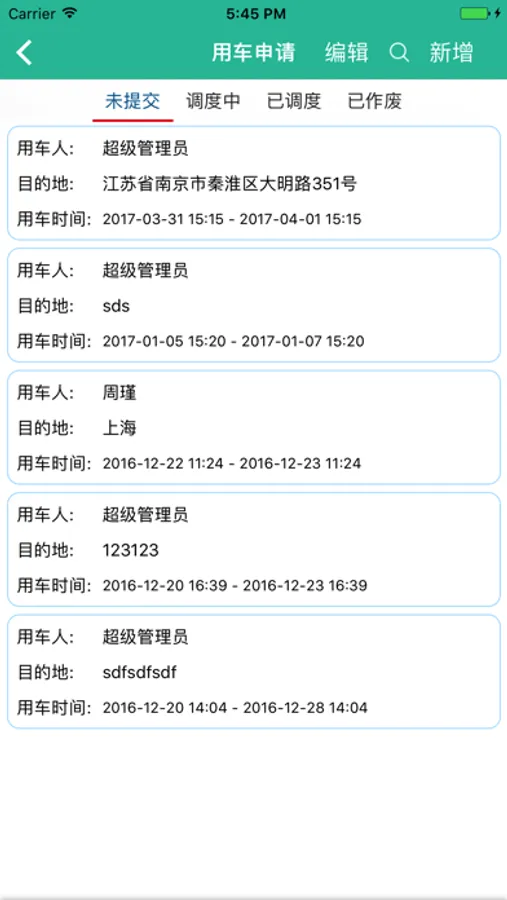 车辆监控中可以实时查看车辆的状态和运行轨迹,派车业务中主要实现申请、审批、调度、归队为一体的业务操作流,同时针对车辆运行和派车产生的数据形成统计分析报表,做数据参考用。