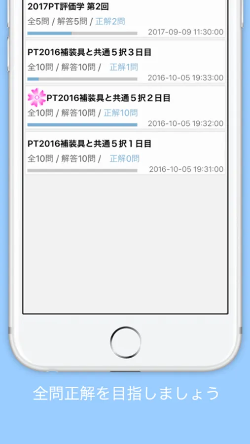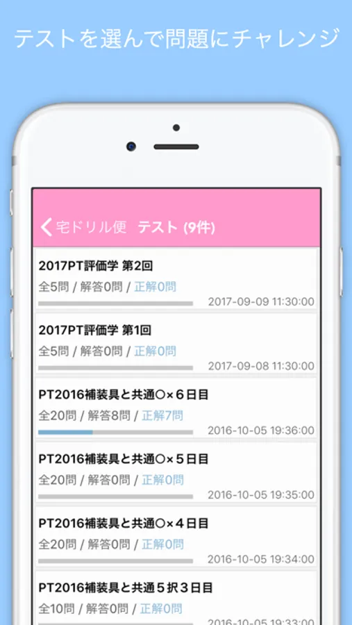 有限会社ラウンドフラットが提供するスマホラーニングシステム「宅ドリル便 システム」から定期的に配信される、理学療法士国家試験過去問題の小テストを行うためのアプリです。問題を解き終えた小テストは、後から復習もできます。