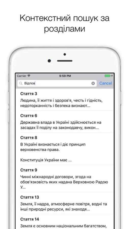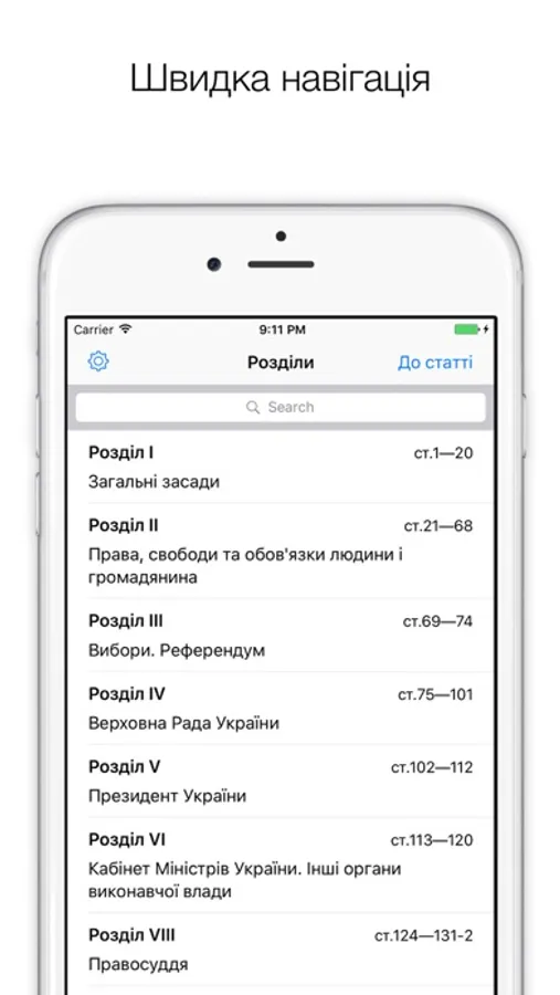 3. Потужний повнотекстовий офлайн пошук за всім законом або окремими розділами