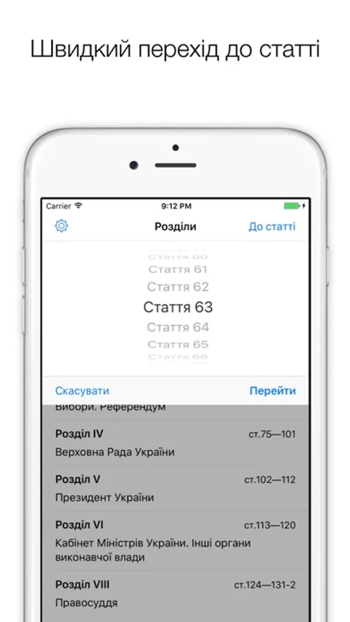 4. Швидкий перехід до статті за номером, перехід між статтями за допомогою жестів