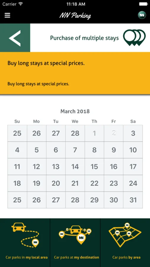 NN Parking es una aplicación móvil que te permite encontrar el parking de NYN que mejor se adapte a tus necesidades de forma rápida y sencilla. Puedes encontrar los parkings disponibles realizando una búsqueda por ubicación actual, por destino o por zona.