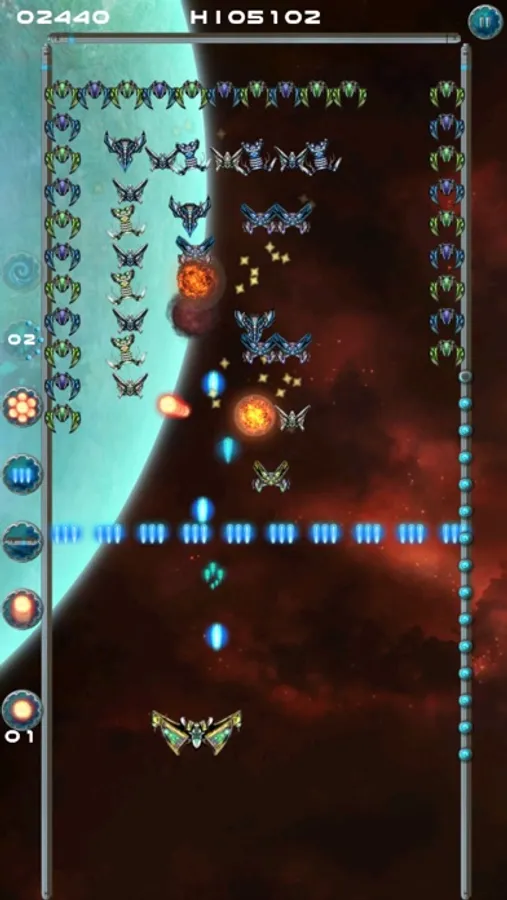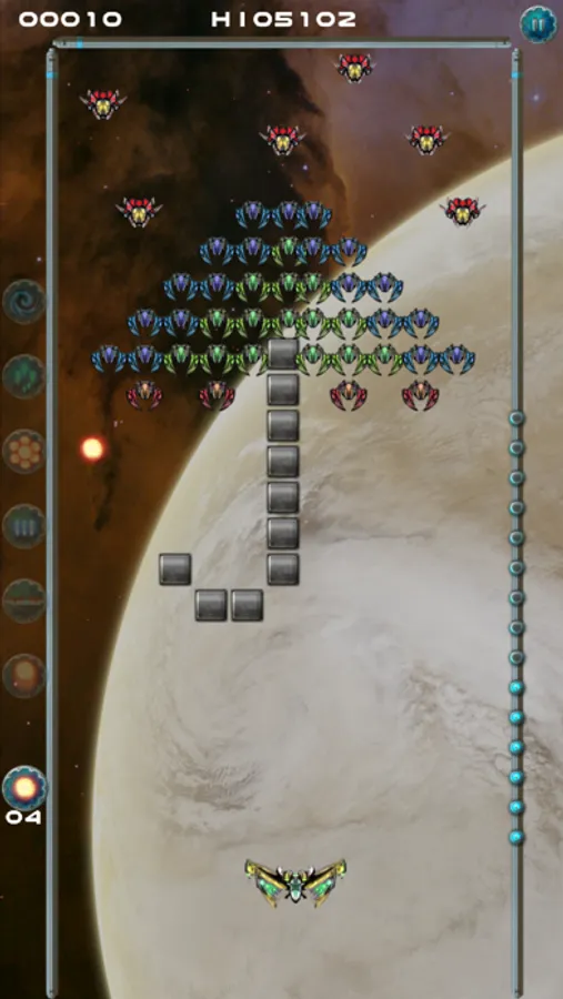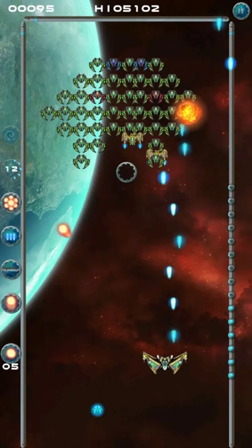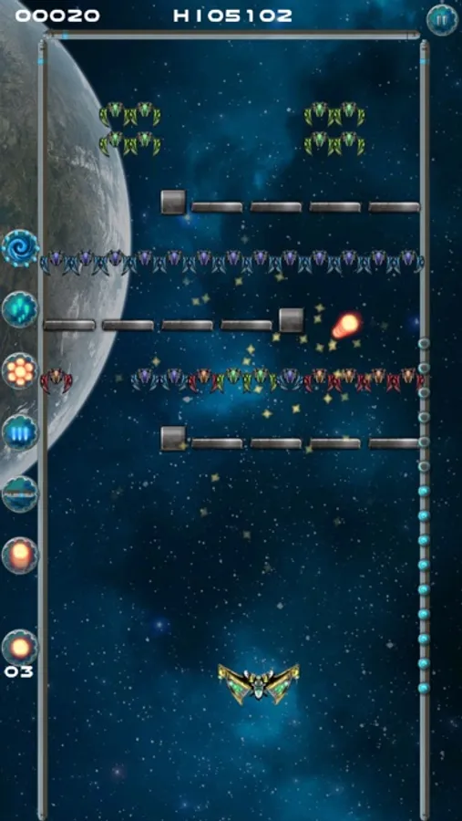 Wipe out all aliens level by level using your spaceship combined with power full extra weapons like