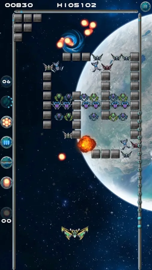 Alien Wall is a powerful genre mix between a brick breaker and a ‘galaxy invader’ / ‘shoot em up’ type of game. It’s packed with extra weapons and highly dynamical levels.