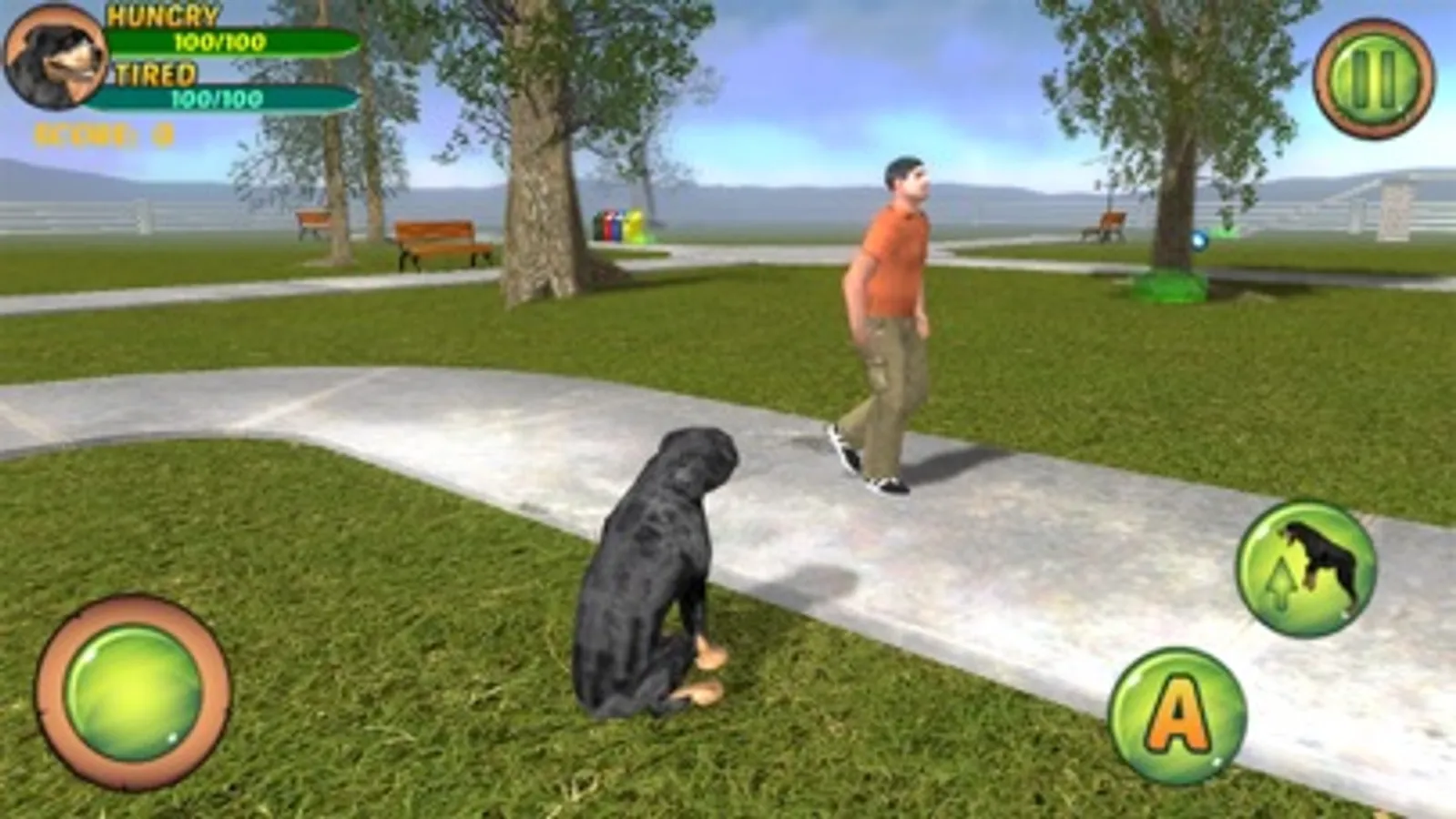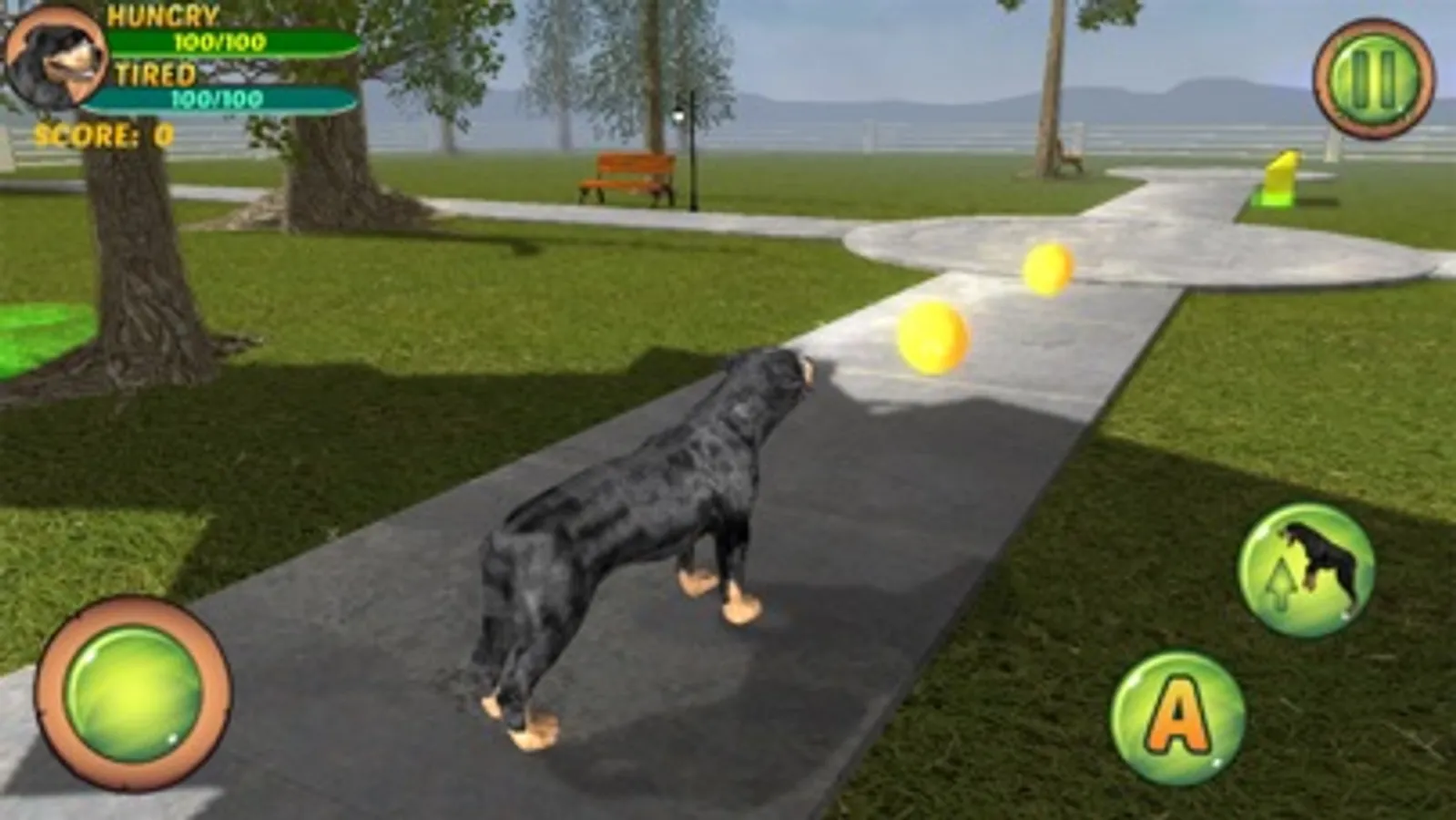 Are you thinking about getting a Rottweiler puppy? Try this game and see what is it about to have a Rottweiler dog. You can run, eat, overcome obstacle sets, collect coins or even scare people in the city park : )