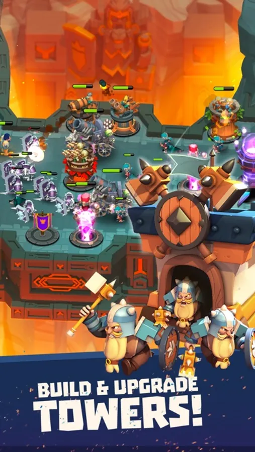 Face countless challenging battles & taste hard earned victory as you build, upgrade and repair horde-splatting Towers. Recruit and level up mighty Heroes to protect the kingdoms in this top Tower Defense experience!