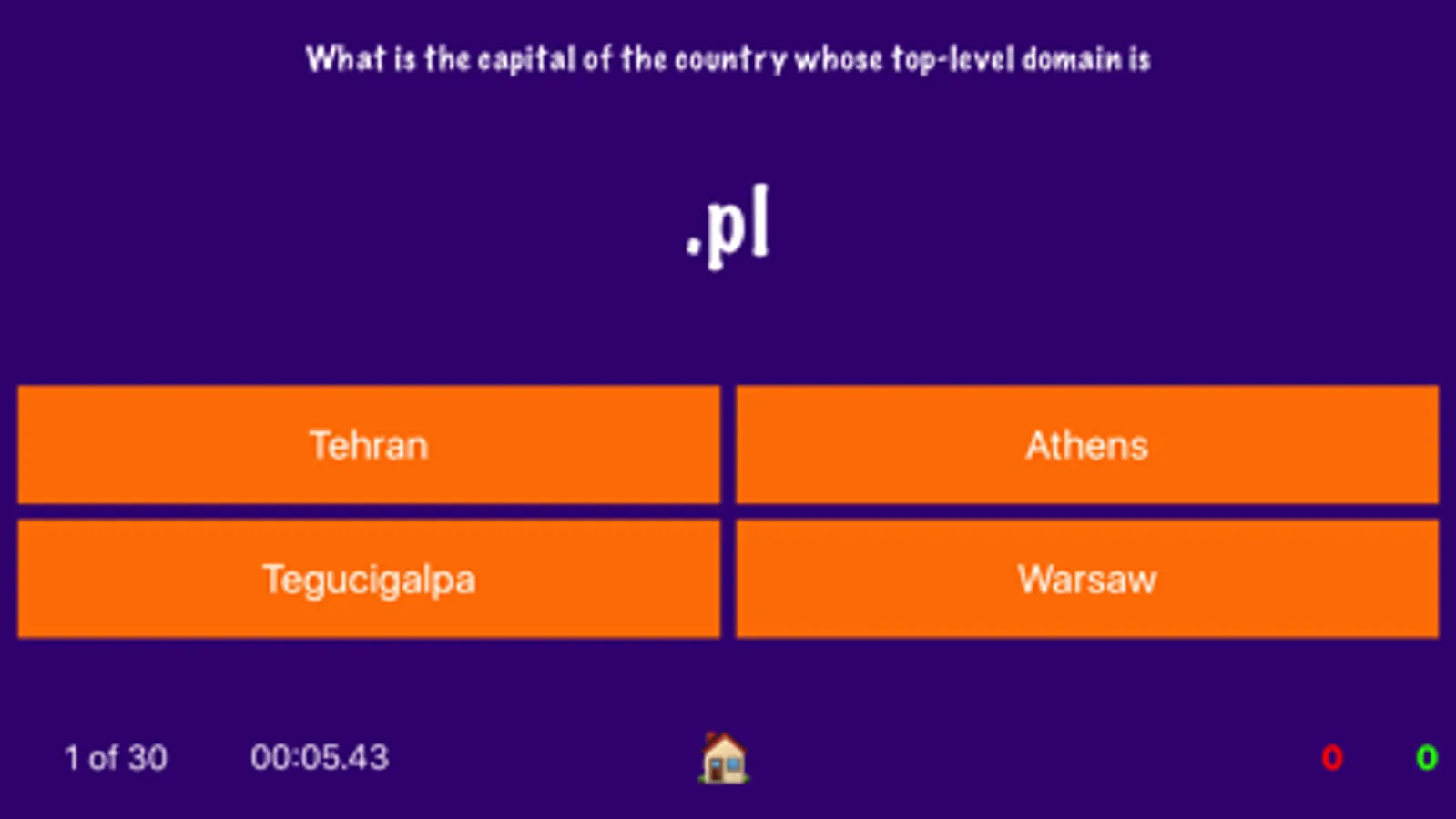 With Pub Quiz Prep: Countries, you'll be able to study certain information about all the countries of the World: Name, Capital, Flag, the name of the Head of Government, the top-level domain (.tld, such as .fr for france or .za for South Africa), and the currency.