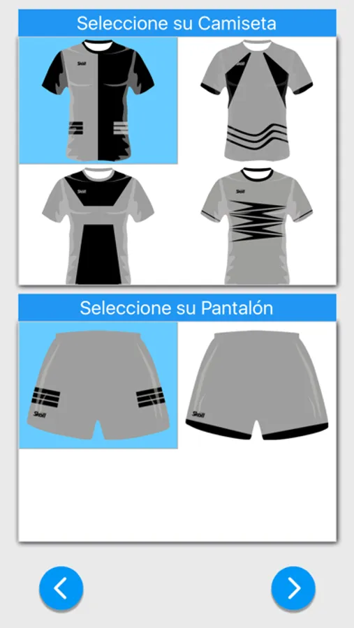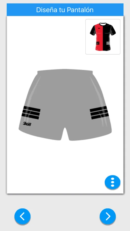 Desde esta APP podemos diseñar nuestra equipación facilmente, con ella elegimos el pantalón y su camiseta, y solicitamos presupuesto. Podemos cambiar colores por zonas, incluir texto, imágenes y todo lo que una euipación pueda requerir.