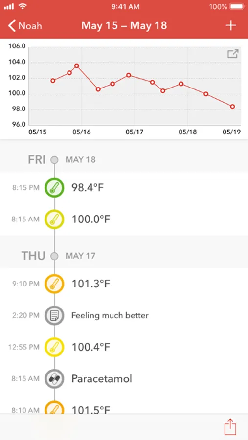 Especially if you use Feevy to track your kids' illnesses, you will appreciate its sync functionality. No matter who measures the temperature or administers medication, both parents will always see the same data on their devices.