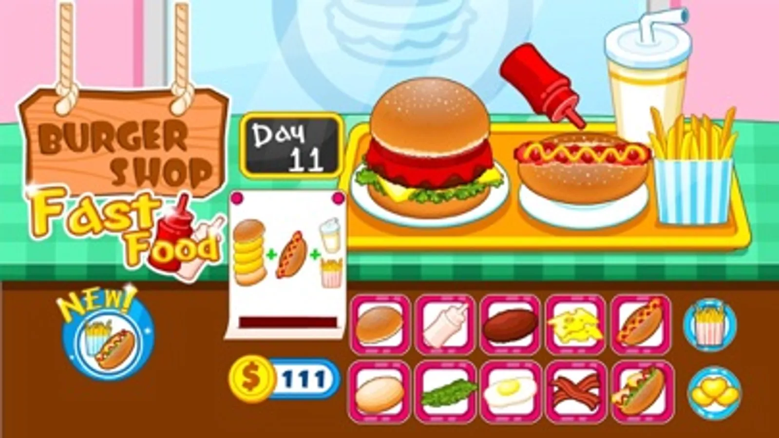 What cooking-related information can you find in the Burger Shop Fast Food game?