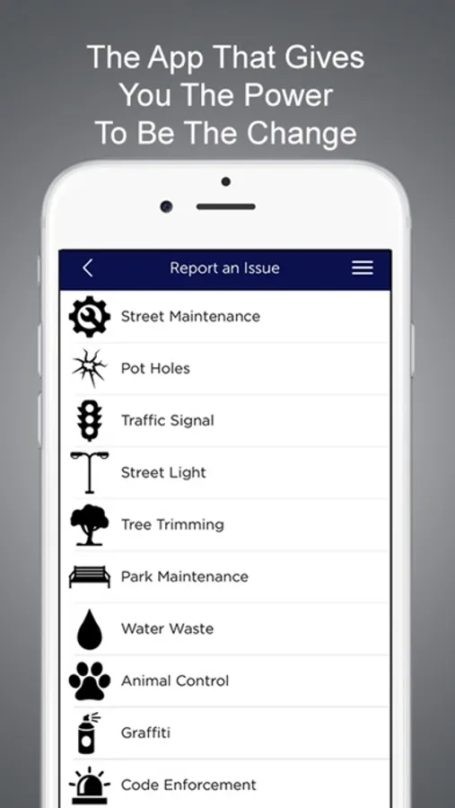 Use the Issue Reporting section to report graffiti, potholes and other issues directly to the correct city department right from your phone. The issues are tracked from the initial report to resolution in the "My Reports" section and you will receive push notifications as your report progresses.