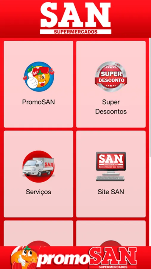 Aplicativo do SAN Supermercados para te manter informado dos destaques semanais realizados nas lojas.