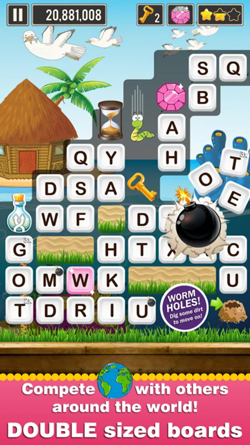 Use your word making skills to help navigate the worm down towers of letters, but watch out for the new double ice traps! Puzzle your way down and around obstacles, before time runs out.