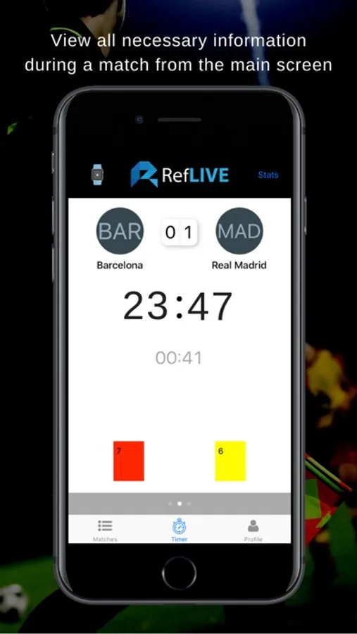 Football (Soccer) Referees can use the RefLIVE smartwatch app to track time, record match details and measure performance. The RefLIVE smartwatch app lets you record: