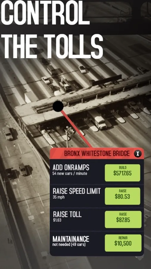 Learn to broker power like the player who invented the game: Robert Moses. Upgrade and build to re-create the empire of bridges, tunnels, highways, beaches, massive projects and World’s Fairs that define 20th century New York City.
