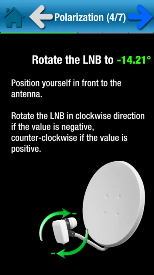 4. Calculate the polarization and adjust the rotation of the LNB (the head of your antenna)