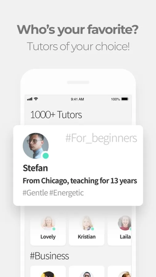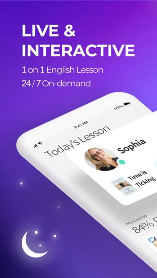 You can start your on-demand 1 on 1 English lesson with native tutors any time anywhere you want. On the other side of the line, there's an actual human tutor - not a computer or an AI robot.