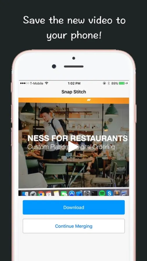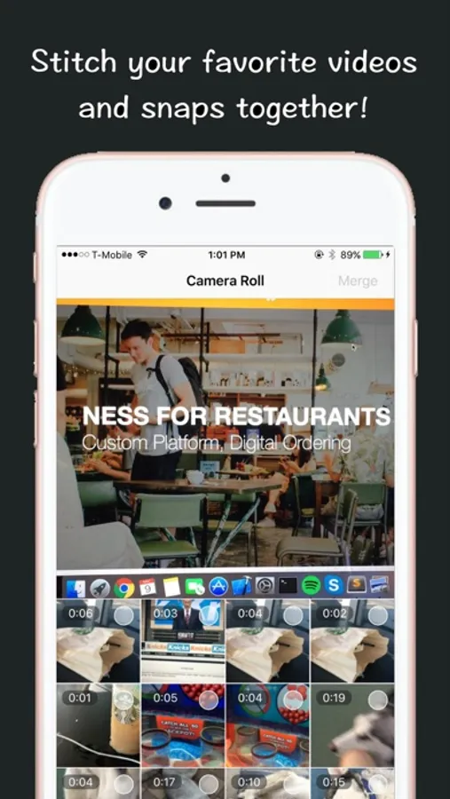 VidFlow is the fastest and easiest way to stitch your favorite videos together! Simply choose videos from your camera roll in the order you want your videos to appear, and then press "Merge"!