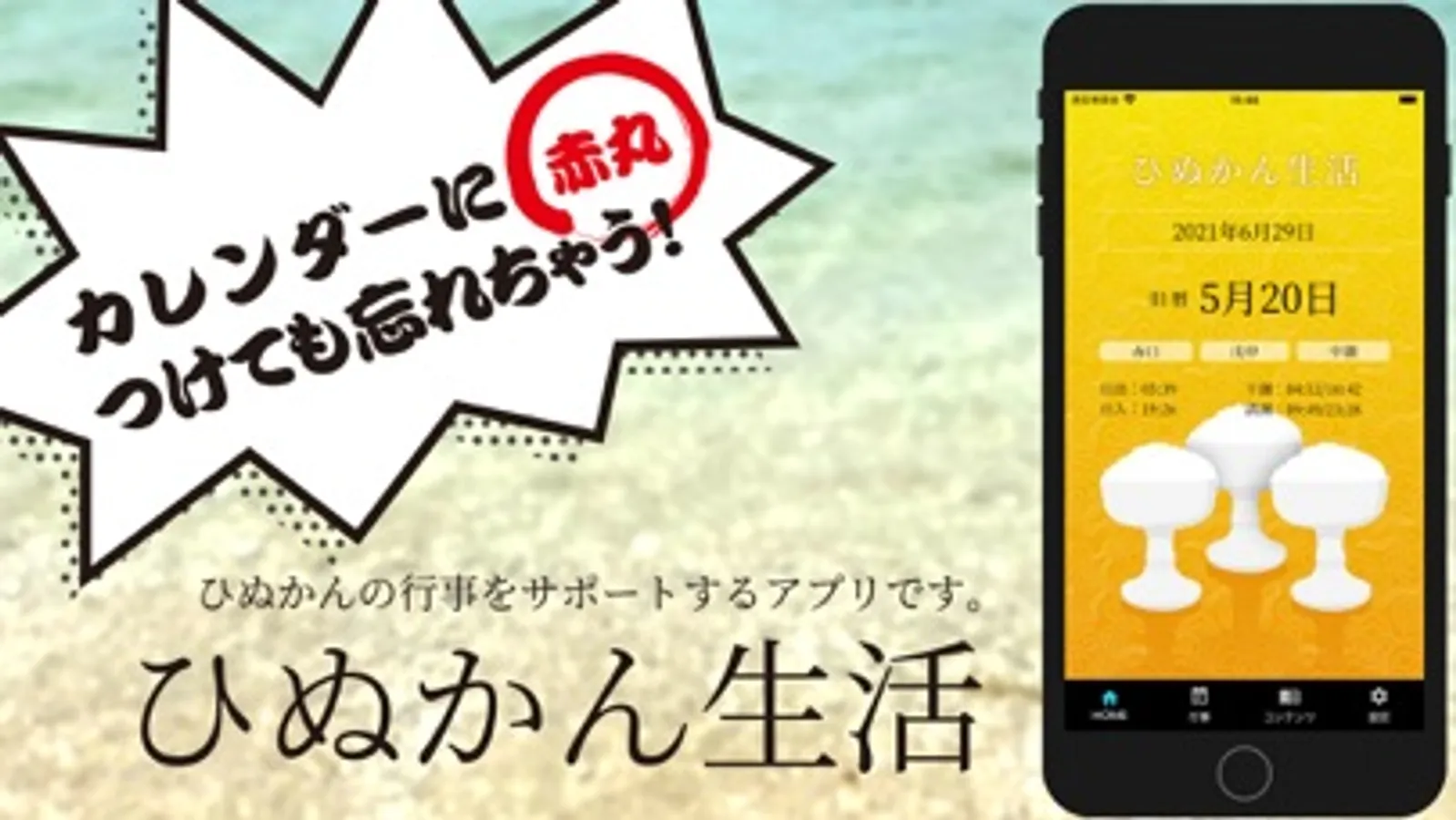 行事の日に通知がきます。旧暦で行われるひぬかんの行事をつい忘れてしまうあなたに、お勧めしたいアプリです。