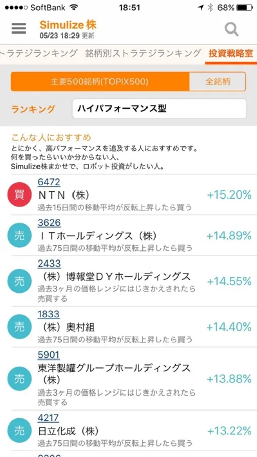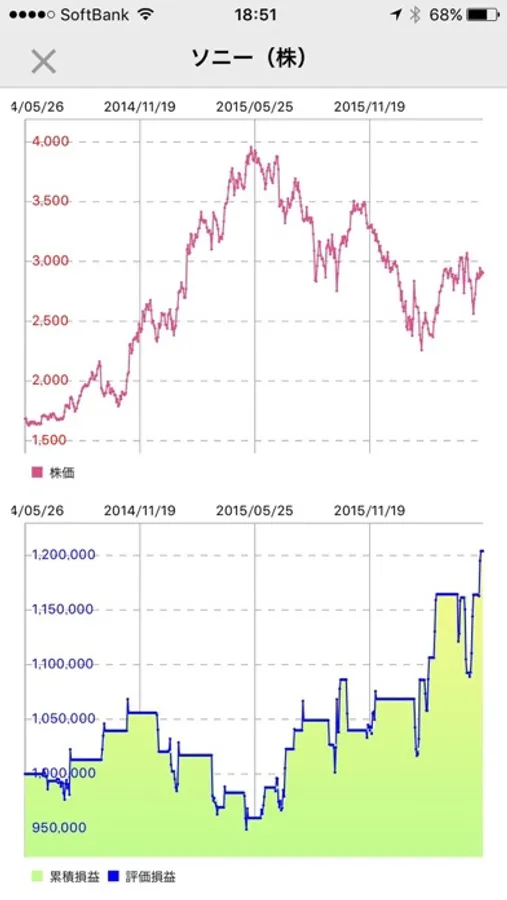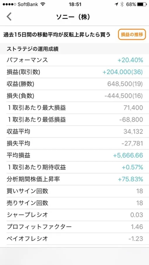 その銘柄にタッチするとシミュレーション結果をみることができます。