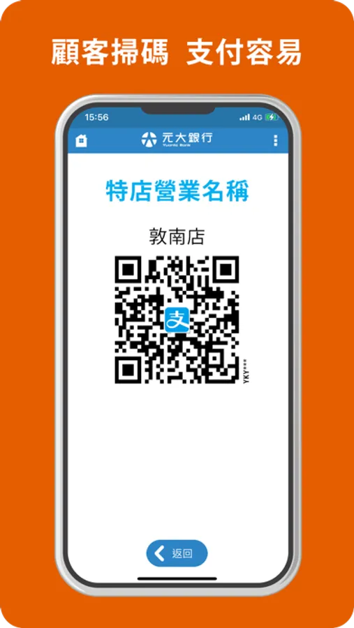掃碼收付超容易:採用QR Code正向(顧客)掃碼付款及反向(店家)掃碼收款,多元操作又容易。