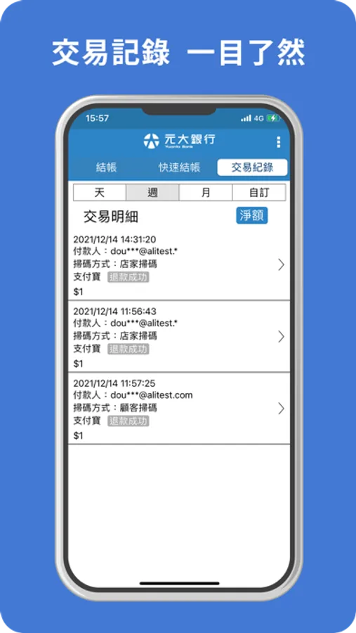 交易記錄超清晰:查詢交易成功、失敗或退款等記錄,一目了然。
