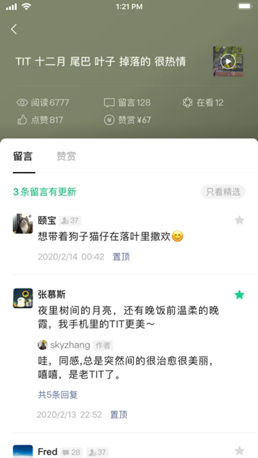 - 实时互动:第一时间收到来自读者的消息并及时回复,或使用星标功能精选优质留言,向大众公开。
