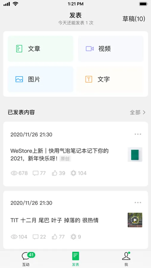 - 便捷创作:在编辑图文消息时,可一键添加图片和音乐;也可以快速的发布图片和文字消息。没有及时发出的图文消息会被存储在草稿箱里。还可以随时修改已发文章中的错别字。