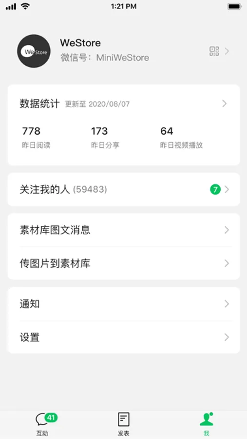 - 帐号管理:可在手机上修改公众号头像、名称和简介。