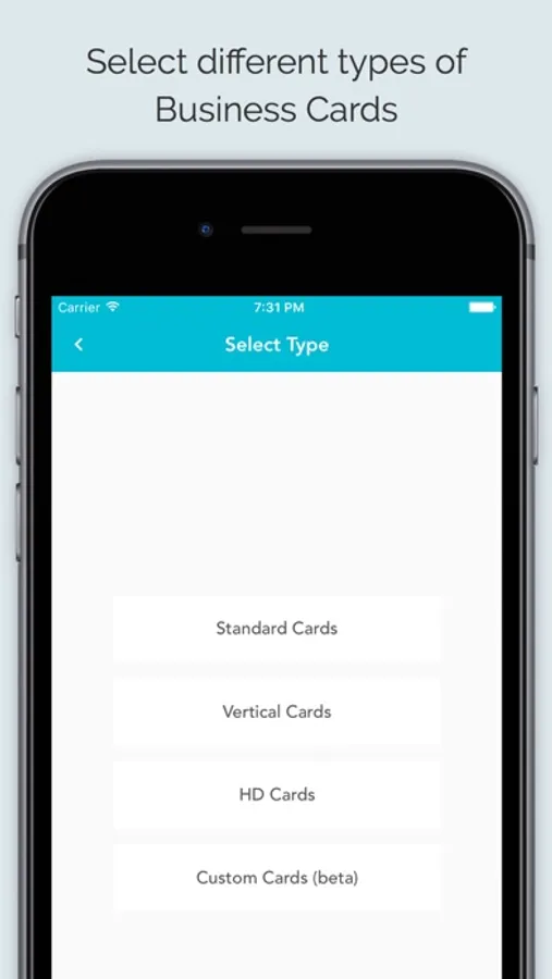 - Standard Card: this are horizontal business card with a lot of options to choose from