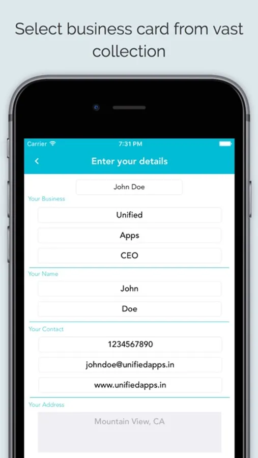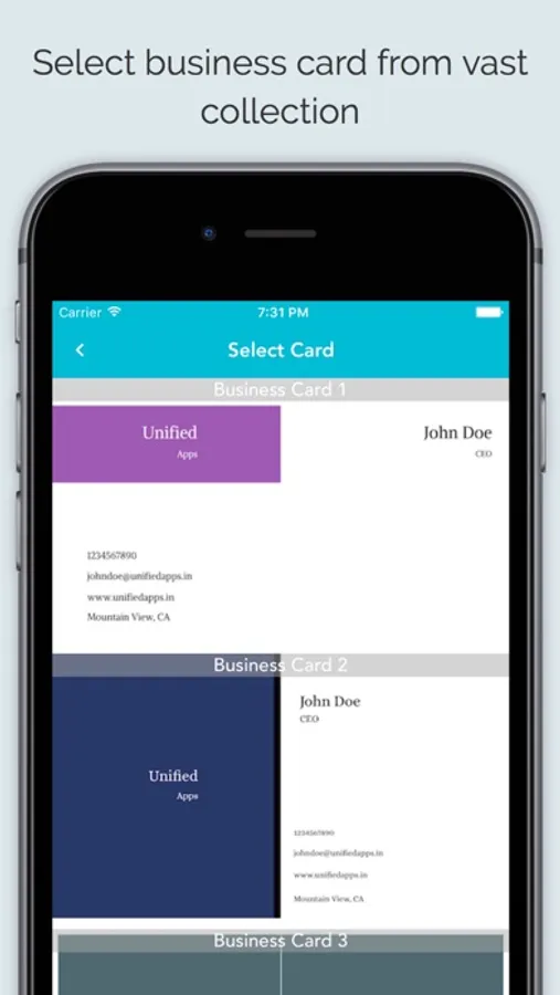 The best business card application used by thousands of people. Business Card Maker creates professional digital business card for your business. You can create, save and share your business card. You can also create custom business card according to your need.