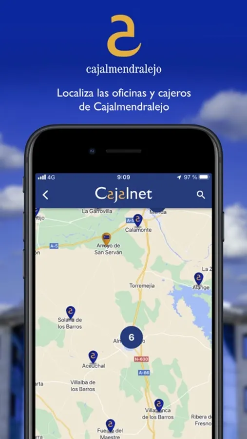 La aplicación ofrece un sistema de localización de oficinas de Cajalmendralejo y de los cajeros propios o de otras entidades en los que no se cobra comisión por la utilización de las tarjetas de débito; así como conocer la dirección de la oficina o cajero e incluso la ruta para llegar. Además permite llamar por teléfono directamente a la oficina que desee.